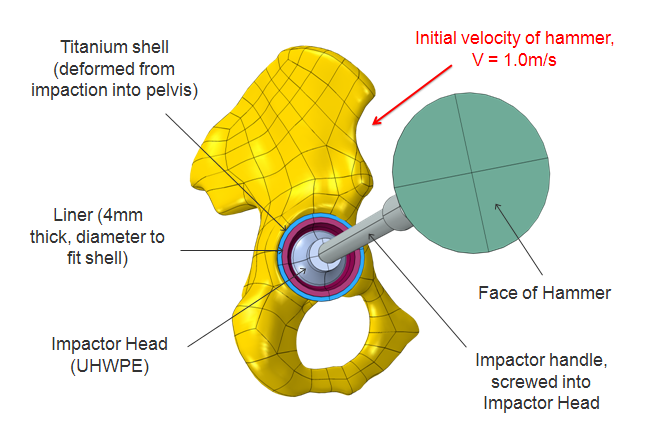 Methods: A dynamic finite element model was used to simulate the impaction of a “typical” modular hip implant cup, consisting of both a Titanium Shell and Titanium Liner component, into a 1mm under-reamed acetabulum. The effect of varying the Shell wall thickness on final Shell and Liner deformation was investigated. The wall thicknesses of the Shell components analysed were 2mm, 3mm and 4mm. In all cases the thickness of the Liner was 4mm.