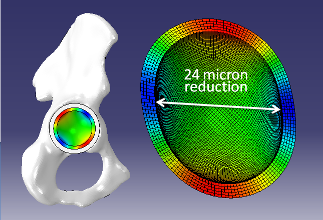 Introduction: In cementless hip arthroplasty fixation of acetabular cups is often achieved using a press-fit between the cup and the bone, where the acetabulum is typically under-reamed by 1-4mm with respect to the size of the cup. Deformation of the cups during insertion remains a concern as it could lead to changes in the clearance and sphericity of the bearing, which can adversely affect fluid film lubrication that could lead to increased wear and, in extreme cases, equatorial contact.