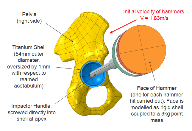 Methods: A dynamic finite element model was used to simulate the impaction of a “typical” modular hip implant cup, consisting of both a Titanium Shell and Titanium Liner component, into a 1mm under-reamed acetabulum. The effect of varying the Shell wall thickness on final Shell and Liner deformation was investigated. The wall thicknesses of the Shell components analysed were 2mm, 3mm and 4mm. In all cases the thickness of the Liner was 4mm.
