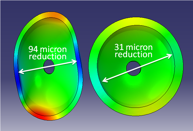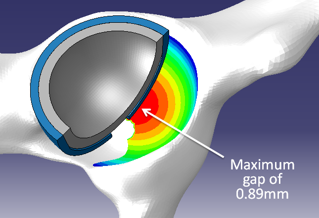 Results: The final decrease in spherical clearance of the Liner was 47 microns (across the diameter) for the 2mm Shell thickness case and 24 microns for the 4mm case. These results are significant compared to the value of 100 microns typically specified for the diametrical clearance to achieve fluid-film lubrication. Such a large deformation may disrupt fluid film lubrication.